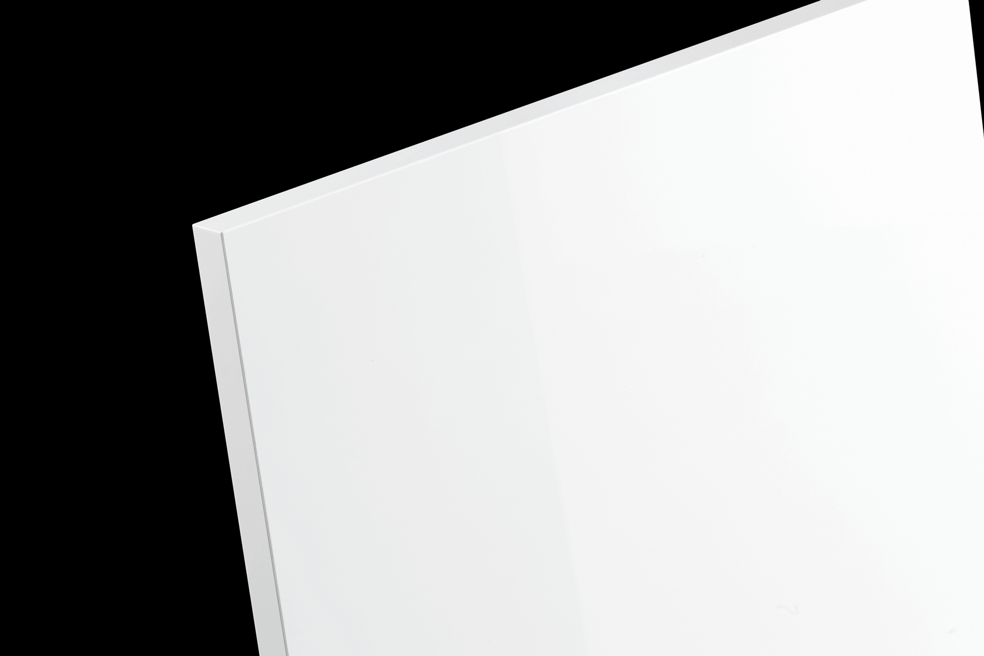 Ante realizzate con pannelli MDF rivestiti in foglia PET lucida, retro melaminico in tinta, bordatura in Abs con colla poliuretanica.